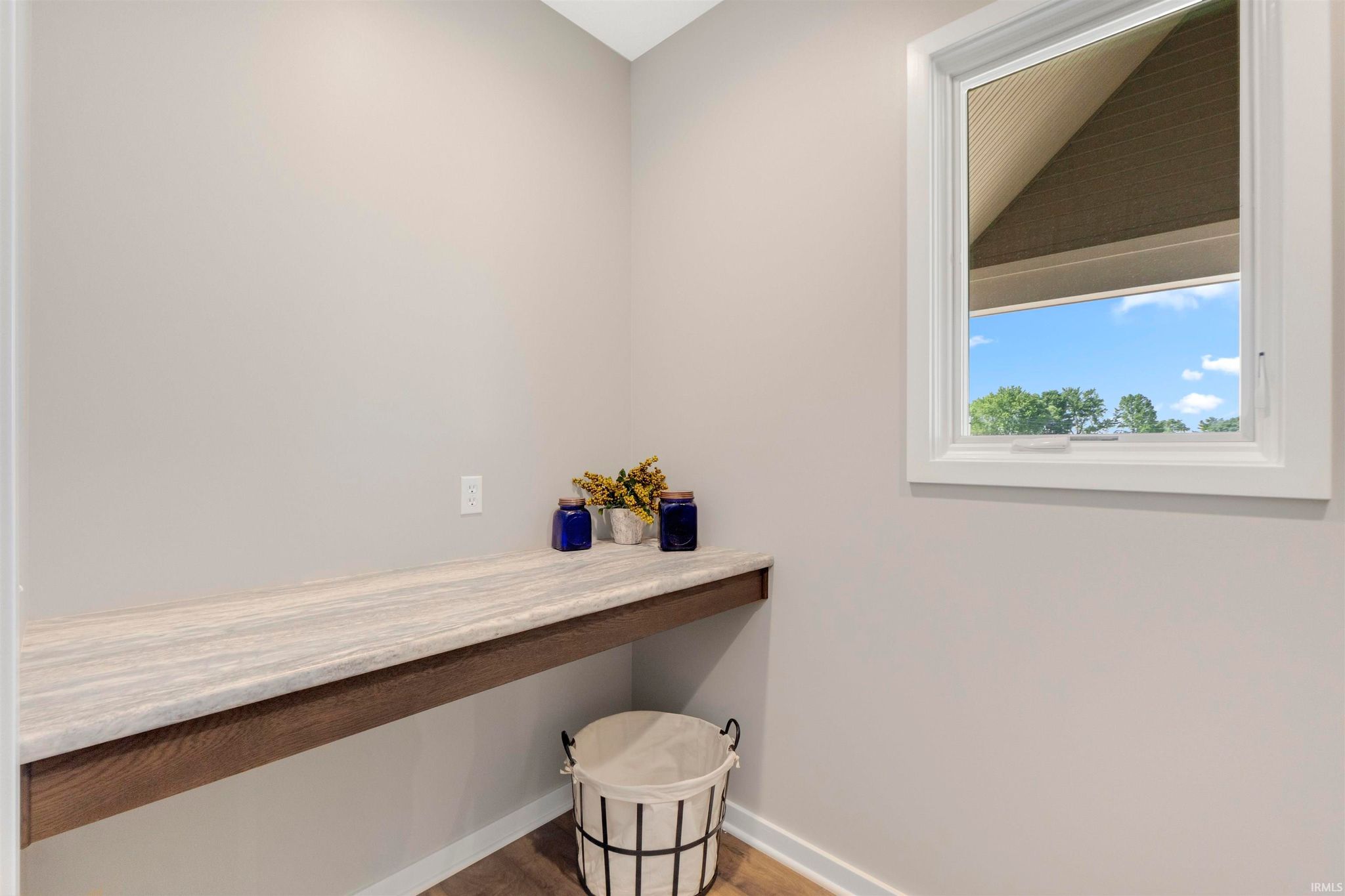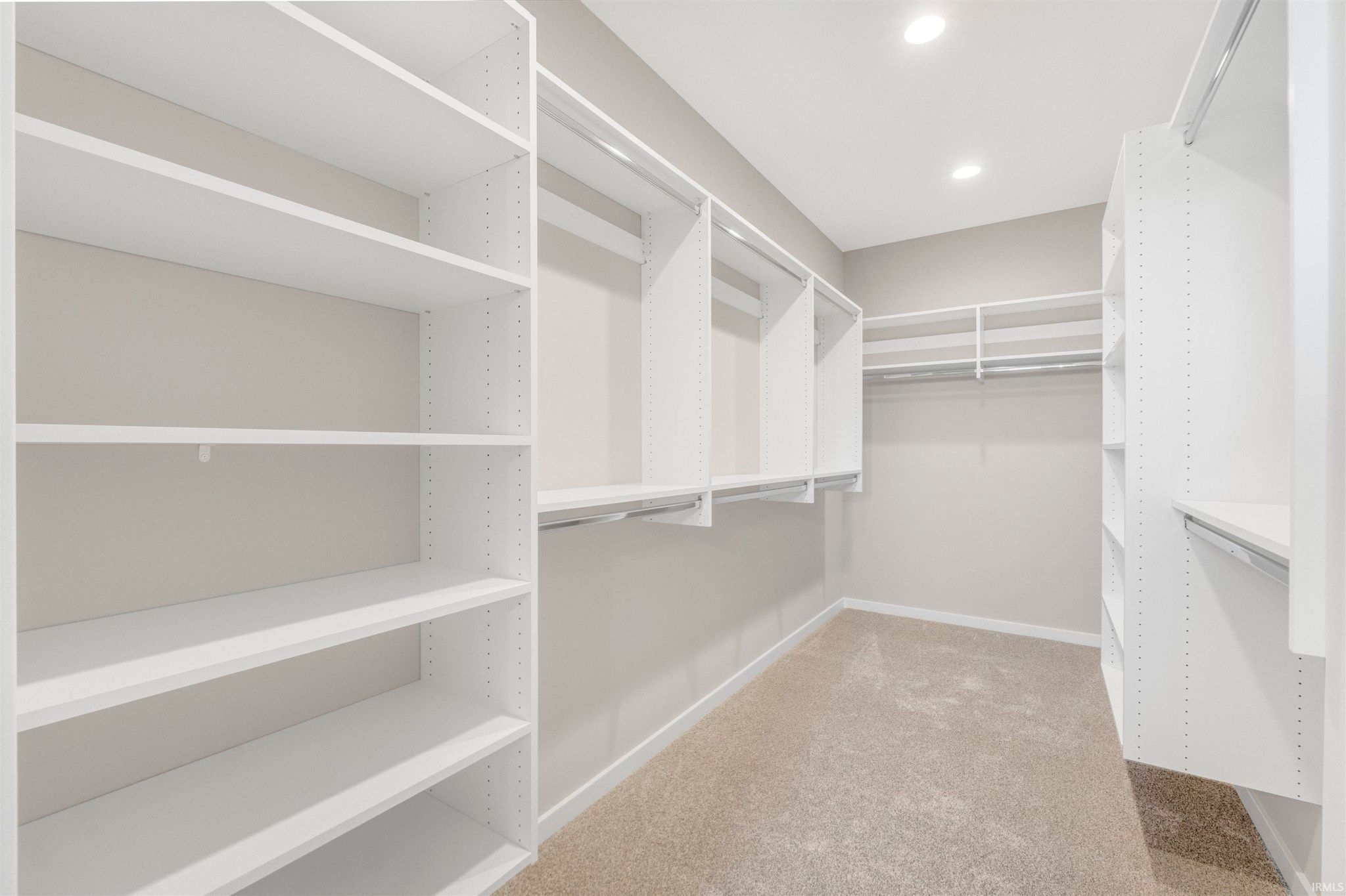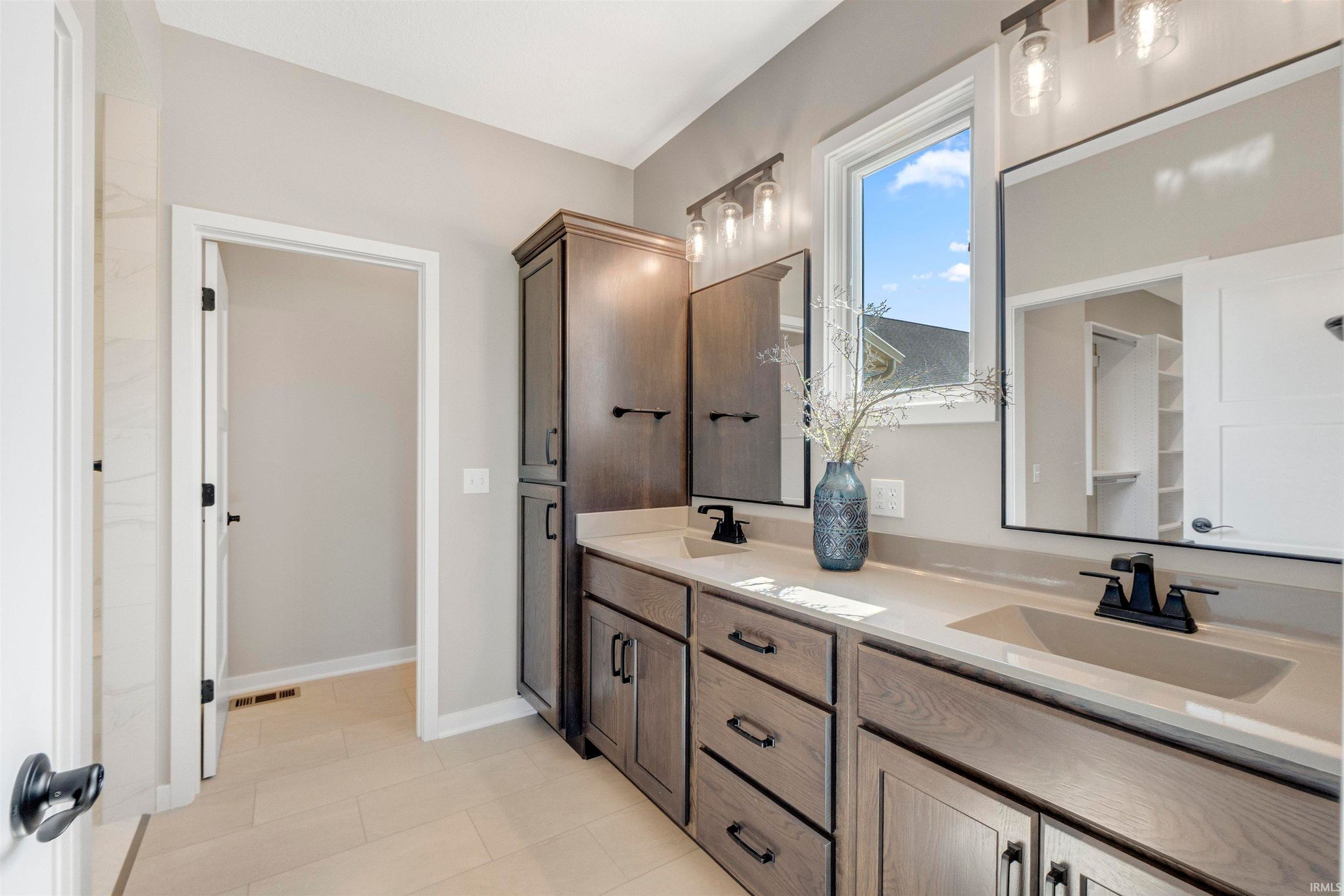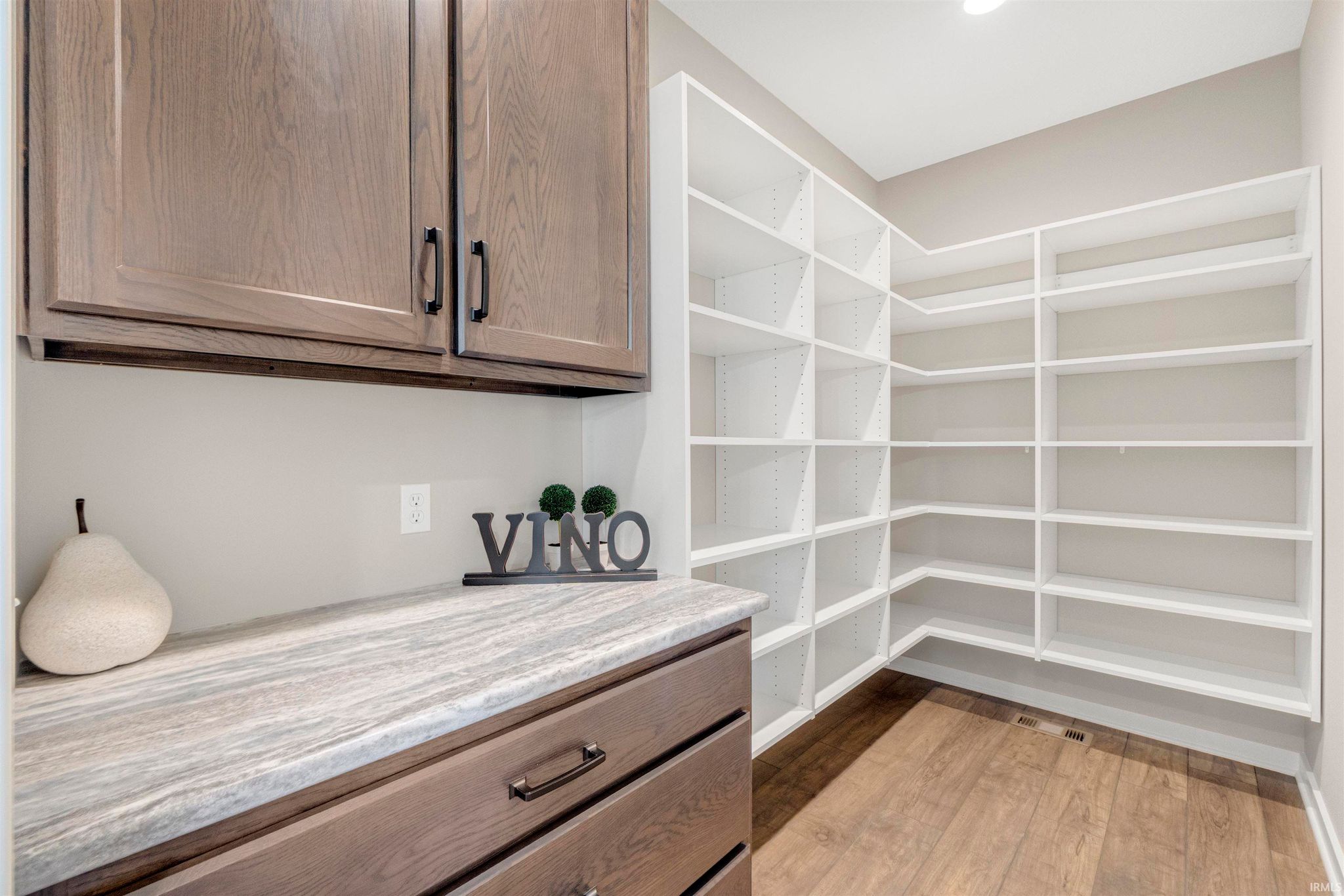 Water-View Ranch by Bob Buescher Homes | Completed 2024 | Warranties Begin at Closing. Experience the opportunity to own a completed ranch with scenic pond views in Cascata Estates by one of Fort Wayne’s most recognized custom builders. Built in 2024 and treated as new construction, this home includes builder warranties beginning at closing, offering the confidence and peace of mind. Thoughtfully positioned on Lot 62 with open sight-lines toward the neighborhood pond and fountain, this 2,032 square foot single-level design offers three bedrooms, 2.5 baths, a private den, and an oversized 971 square foot three-car garage. A soaring cathedral ceiling creates an immediate sense of openness while expansive windows frame tranquil water views and fill the great room with natural light. A gas fireplace with custom built-ins anchors the space with warmth and architectural presence. The open-concept layout flows seamlessly into a thoughtfully designed kitchen showcasing custom cabinetry, quartz countertops, a generous 3x8 island, gas range, full stainless appliance package, and an impressive walk-in pantry. The dining area overlooks the water and opens directly to a covered rear porch with additional patio space, ideal for morning coffee, evening sunsets, and effortless indoor-outdoor living. The private primary suite also enjoys pond views and features a spa-inspired bath with tiled walk-in shower, updated double vanity top that now matches the secondary full bath, linen storage, and a spacious walk-in closet with built-in shelving. Two additional bedrooms are thoughtfully positioned for privacy, while the dedicated den near the foyer offers flexibility for a home office or quiet retreat. A custom built-in bench and adjacent half bath just off the garage enhance everyday functionality. Irrigation, newly seeded lawn, builder orientation prior to closing, and immediate possession provide the benefit of new construction without the extended build timeline. Cascata Estates offers convenient access to walking trails, shopping, dining, Parkview Regional Medical Center, and I-69 within a desirable north Fort Wayne community. This completed water-view ranch is ready for its first owners.